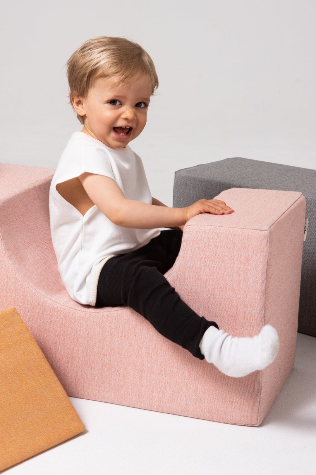 Durch ihre überlegten Formen bieten die Spielmöbel unzählige Einsatzmöglichkeiten: als Pouf vor dem Sofa, als Ablage neben dem Bett, sie werden zur Eisenbahn oder zum schiefen Turm von Pisa – Spielzeug und Möbel zugleich.